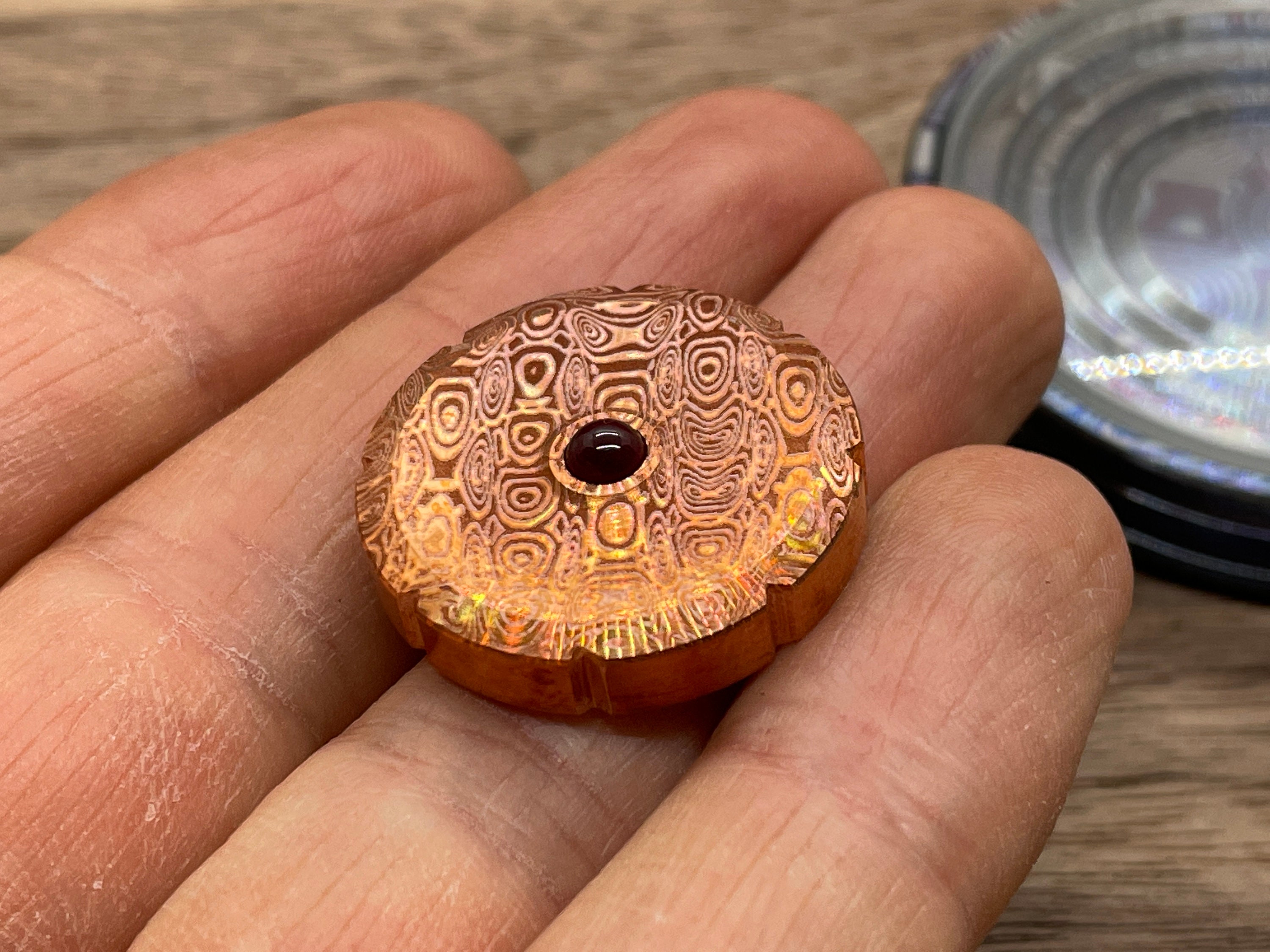 Dama Pattern Engraved Copper Spinning Worry Coin Ruby Bearing Etsy Uk